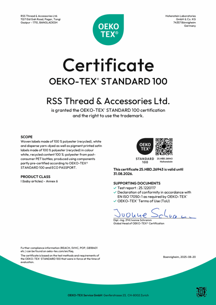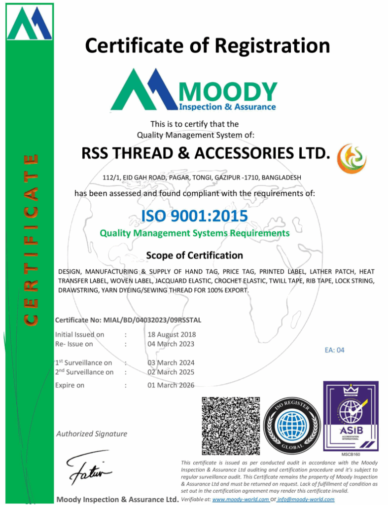 Crafted using premium polyester and nylon yarns, these labels offer exceptional durability, fine detailing, and a luxurious finish. Designed for high-end garments, they maintain color and shape even after repeated washes. Produced under transactional certification standards, ensuring ethical sourcing and sustainable manufacturing practices.