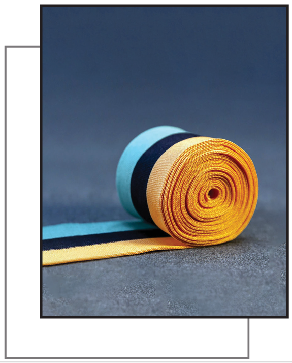 Made from sustainable raw materials such as recycled polyester, nylon, or organic cotton, Jacquard elastic offers superior stretch, durability, and comfort. Its woven-in designs and logos provide a stylish branding option while maintaining elasticity and shape. Ideal for waistbands, cuffs, lingerie, activewear, and fashion garments, where both comfort and decorative appearance are essential. Produced under transactional certification, ensuring ethical, eco-friendly, and high-quality manufacturing