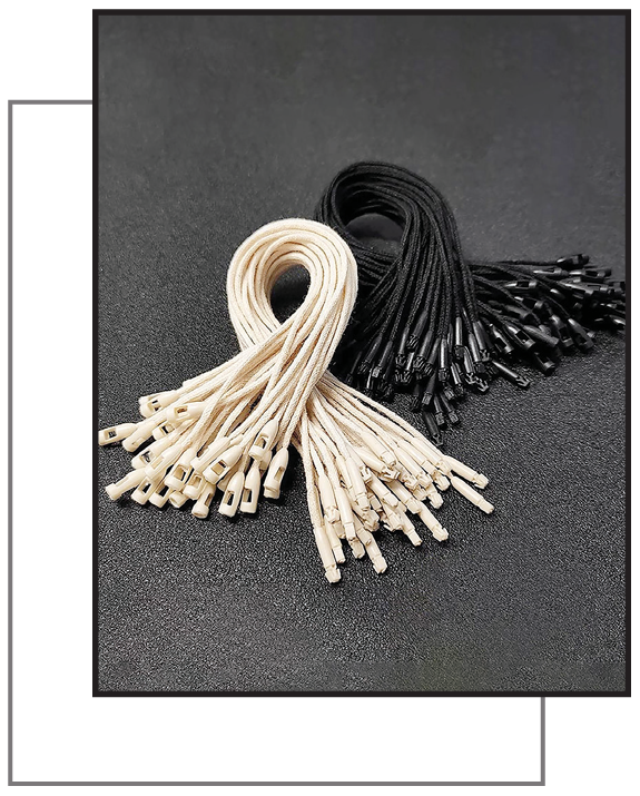Manufactured from cotton, polyester, or blended yarns, drawstrings combine functionality with style, available in flat or round forms. Widely used in hoodies, joggers, bags, and shorts for adjustable fastening and aesthetic enhancement.